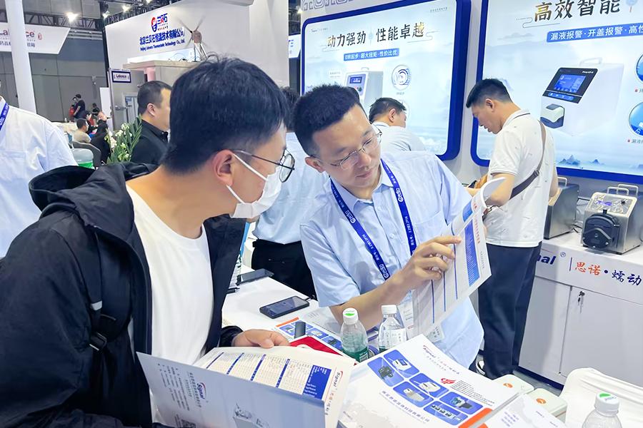 在展會現(xiàn)場,眾多參觀者對思諾蠕動泵表現(xiàn)出濃厚興趣,紛紛駐足了解產(chǎn)品性能及應(yīng)用場景。