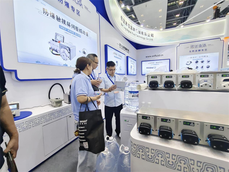保定思諾流體科技有限公司的展位前人頭攢動,特別是其展示的AI智能蠕動泵能接入AI智能語音系統(tǒng),實(shí)現(xiàn)萬物智聯(lián),智能體驗(yàn)讓AI解放雙手,還能實(shí)現(xiàn)全數(shù)據(jù)本地與云存儲,讓復(fù)雜控制的應(yīng)用變得簡單易操作。新研發(fā)的具有高防爆和高防護(hù)等級的防爆觸摸屏伺服蠕動泵,0轉(zhuǎn)起步,高精度控制,擁有專業(yè)防爆觸摸屏,采用伺服防爆電機(jī),體形小巧,動力強(qiáng)勁,震動小,噪音低,精簡的界面讓操作更便捷。同時還有調(diào)速模式、定速定量兩種控制模式可以自由切換。