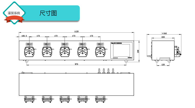 1.灌裝系統(tǒng)由4組基本通道(可擴(kuò)展至32通道),一臺控制器組成,可安裝YZ15、YZ25泵頭