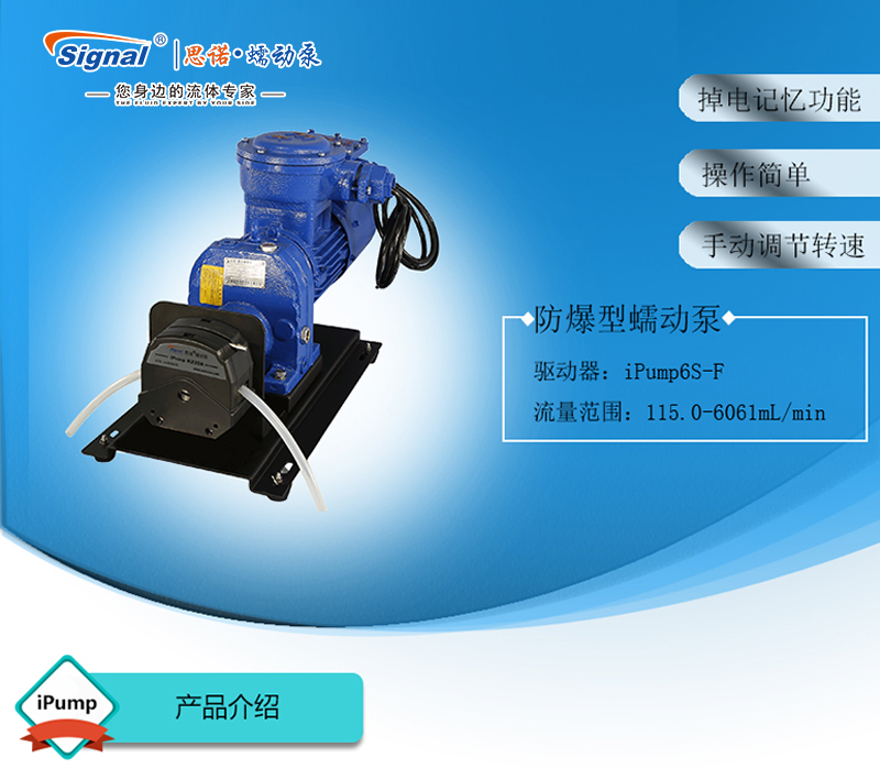 ? ? ?1.流量范圍:115.0-6061mL/min ? ? ?2.免維護交流防爆減速電機驅動,變頻器調節轉速 ? ? ?3.電機扭矩大,可級聯雙泵頭 ? ? ?4.防爆等級DIIBT4,適合易燃易爆環境使用