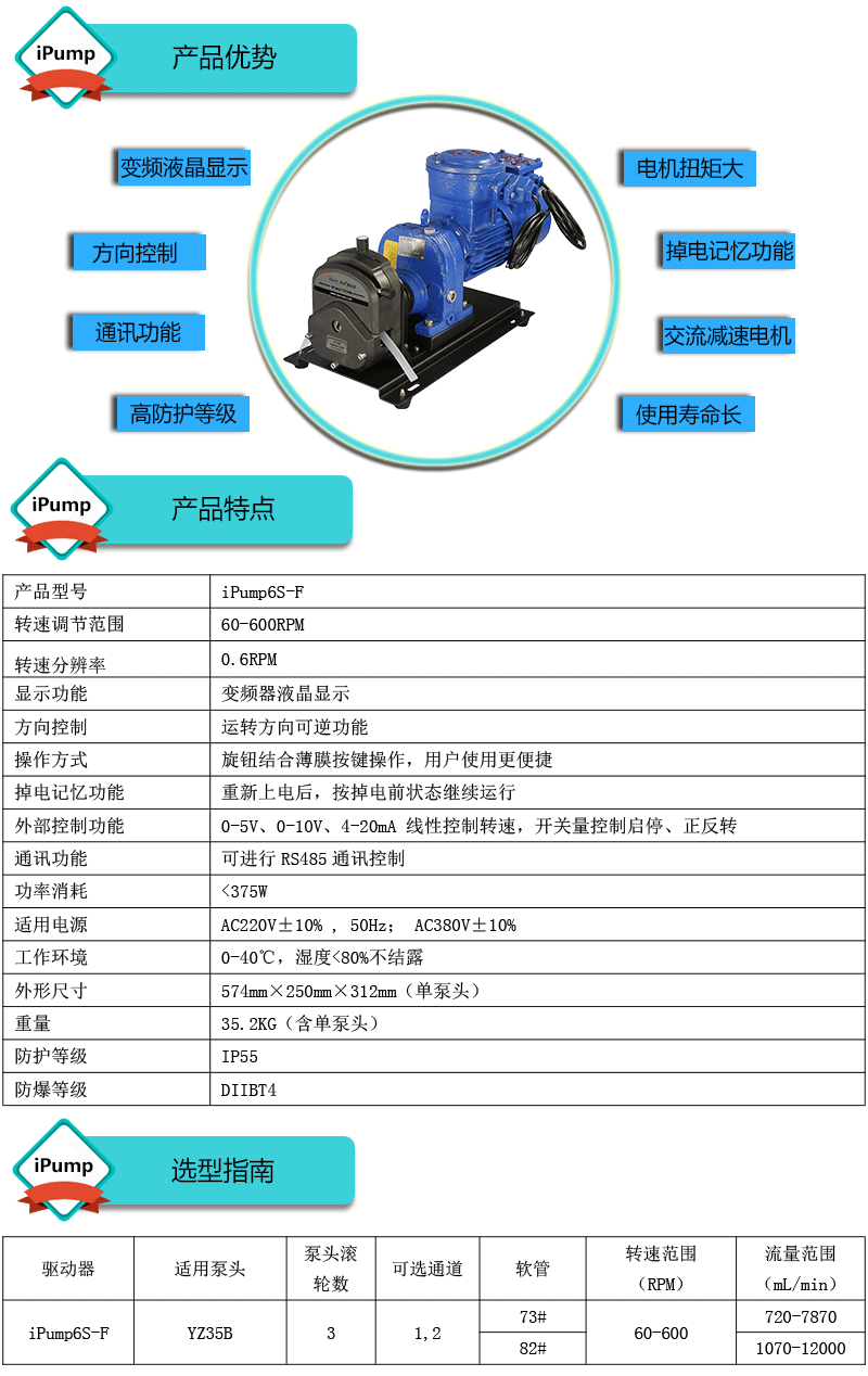 1.流量范圍:715.00-12033.33mL/min 2.免維護(hù)交流防爆減速電機(jī)驅(qū)動(dòng),變頻器調(diào)節(jié)轉(zhuǎn)速 3.電機(jī)扭矩大,可級(jí)聯(lián)雙泵頭 4.防爆等級(jí)DIIBT4,適合易燃易爆環(huán)境使用