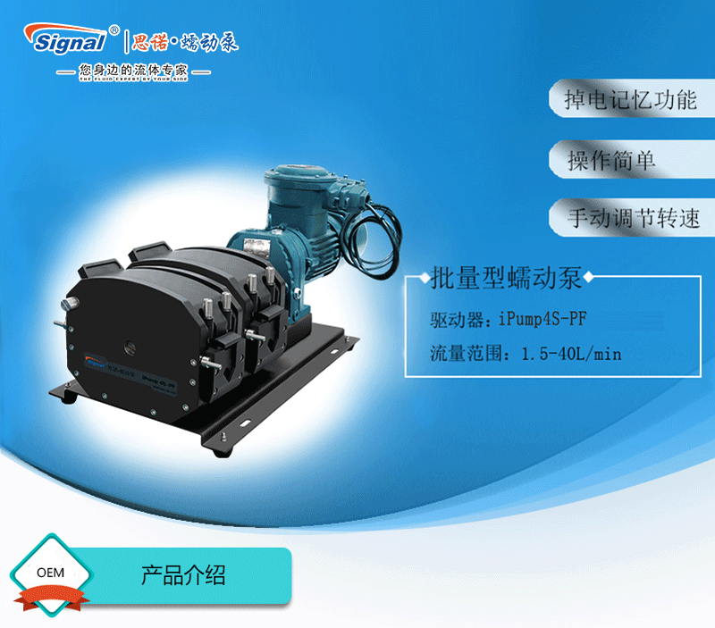 流量范圍:1.5-40L/min 彈性壓管結(jié)構(gòu),軟管壽命長,非常適合大流量液體傳輸 免維護(hù)交流減速電機驅(qū)動,變頻器調(diào)節(jié)轉(zhuǎn)速 全金屬泵頭,高精度,更可靠 防爆等級DIIBT4,適合易燃易爆環(huán)境使用