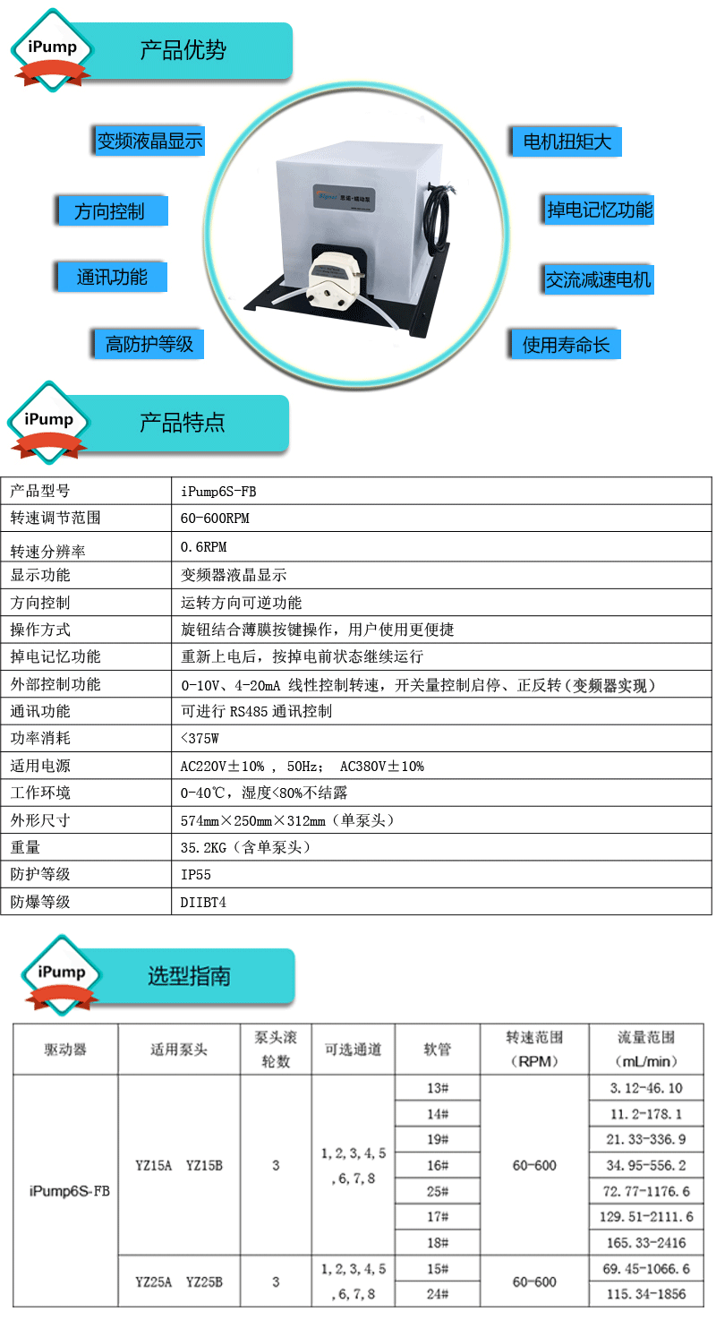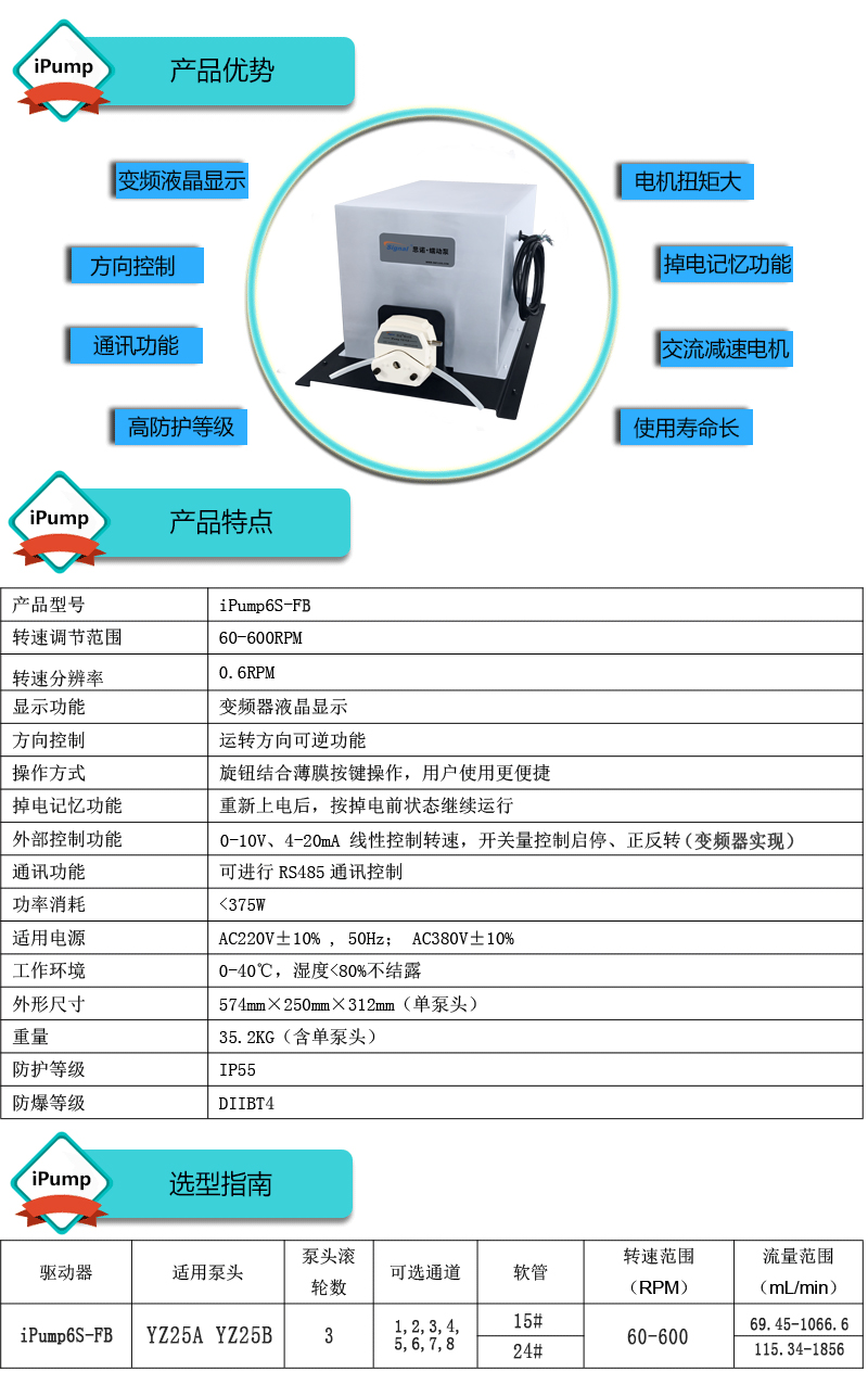 流量范圍:3.12-2416mL/min 免維護交流防爆減速電機驅(qū)動,變頻器調(diào)節(jié)轉(zhuǎn)速 電機扭矩大,可級聯(lián)雙泵頭 防爆等級DIIBT4,適合易燃易爆環(huán)境使用