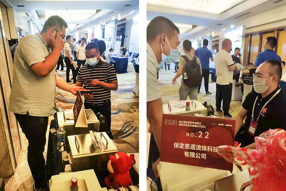 2021年初,原油一路猛漲,導致EO、聚醚、丙烯酸等減水劑關聯(lián)原料價格漲幅明顯,減水劑企業(yè)高成本承壓運行;此次展會為各大減水劑企業(yè)帶來希望和新生,也為蠕動泵行業(yè)市場打開了一片光明。眾多參會人員來到22號展位了解思諾蠕動泵相關信息,由表及里,如何應用,如何維護,我們的銷售經(jīng)理都一一作答,思諾團隊受到所有前來駐足的客商的一致好評,也知道了思諾蠕動泵產(chǎn)品擁有高性能、高質量和易清潔易維護等特點,思諾還為減水劑行業(yè)各類應用需求提供優(yōu)解決方案。現(xiàn)場眾多意向客戶添加微信,互換名信片;待著期望而來,攜帶滿意而歸。