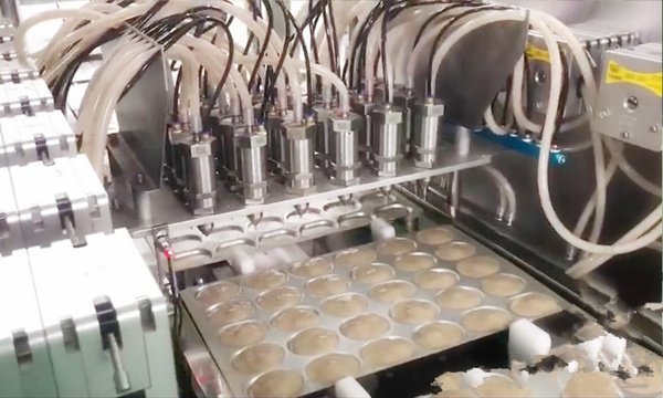 蠕動泵是一種利用蠕動原理實現灌裝的設備,具有灌裝的優勢。它以其結構和工作原理,成為食品行業的熱門選擇。微型蠕動泵內部有一個灌裝腔室,通過蠕動泵的不斷運動,將待灌裝物料推送至出口。而在雞蛋糕生產中,通過調整蠕動泵的運動速度和蠕動泵頭的尺寸,可以實現雞蛋糕的定量灌裝,保證每個雞蛋糕的重量和口感的一致性。