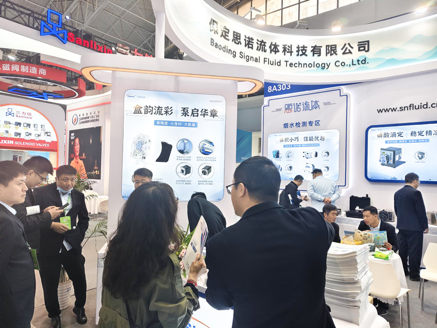 憑借在流體控制領域的技術積累,思諾流體在展會期間與多家環保企業進行了交流洽談。如通過蠕動泵的精準流量控制優化藥劑投加效率,降低能耗成本。同時,針對新能源行業需求,蠕動泵能達到產品在腐蝕性電解液輸送場景中實現無泄漏傳輸,滿足環保與安全雙重標準。當然蠕動泵還可以覆蓋工業廢水處理、固廢資源化、新能源環保設備等領域。